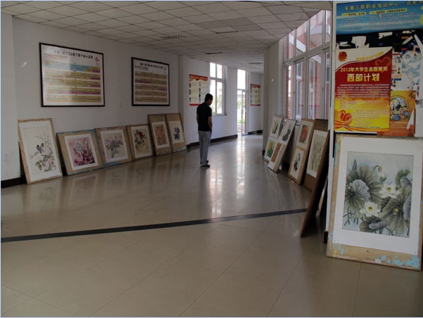 2013年10月9-11日,在D楼一楼大厅,2011级本科艺术设计班的同学们在授课老师王海峰老师组织下,举办了一场《中国画》课程作品展,每幅作品显得惟妙惟肖,栩栩如生,引来了同学们的赞许的眼光。