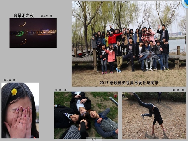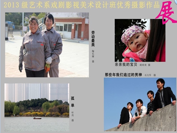 艺术系近日举办13级戏剧影视美术班优秀摄影作品展,集中展示了由刘兵生教授所指导的戏剧影视班在近一年内的优秀摄影作品。期间刘教授利用课堂实践活动,带领班级学生出外采风拍照,学院内,翡翠湖,天鹅湖都留下了师生们的足迹,学生从外出拍照中收获了大量宝贵的实践经验。