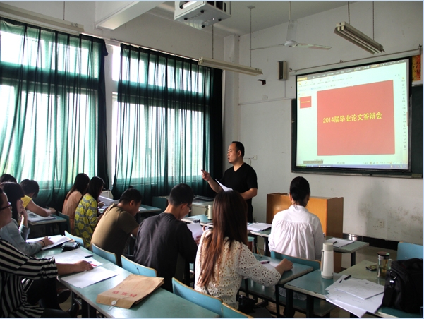 2014年5月20日,我院艺术系2014届本科毕业生毕业论文答辩工作顺利进行。此次论文由孙义主任主持,分两个答辩小组,每个答辩小组由6名教师组成,各组设答辩组长和秘书各一人。答辩分为陈述论文、演示和回答答辩小组老师提问等环节,答辩现场气氛严肃而紧张。答辩小组老师们对参加答辩同学的毕业论文进行了认真审阅,并就其可行性、创作背景、社会效益、经济效益等方面进行了多角度提问。
