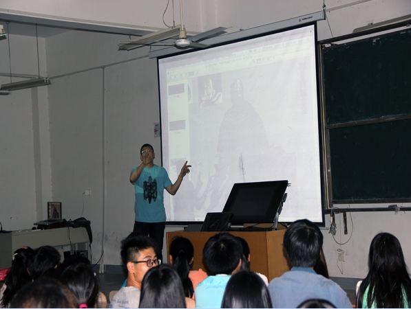 王总监首先对目前国内外影视、游戏产业的情况作了详细的介绍,并结合他目前所主持的国外游戏项目,用具体的游戏案例生动地解读了游戏原画设计风格及题材在中西游戏原画设计理念上的差异,并对中国动漫游戏产业发展前景进行了预测与展望。他还就“艺术与技术的关系”、“数字媒体人才培养与就业”等问题进行了深度解析。鼓励学生进一步明确在今后的专业学习过程中找准自身的学习方向和就业定位,以便更好的实现企业对人才需求的接轨。演讲最后王总监就同学们感兴趣的游戏人物设计表现技法做了现场演示,使在座学生深感受益匪浅。