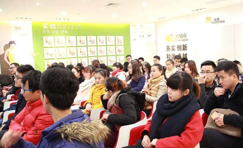 实创装饰公司负责“朝阳计划”的培训师从职业生涯规划入手,分析当前就业形势,结合身残志坚的成功人士等案例,向学生阐释了职业人应该有的心态:学习、责任、感恩;同时,根据职业化表现的四类人“毒品、废品、半成品、精品”,和学生解释了职业化员工的外在表现和内在要求;最后,送给学生一句话:态度决定一切,思路决定出路。
