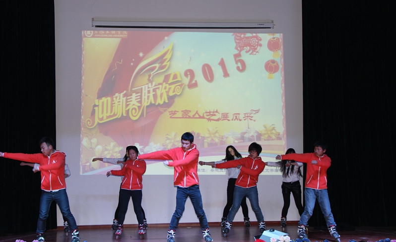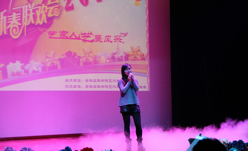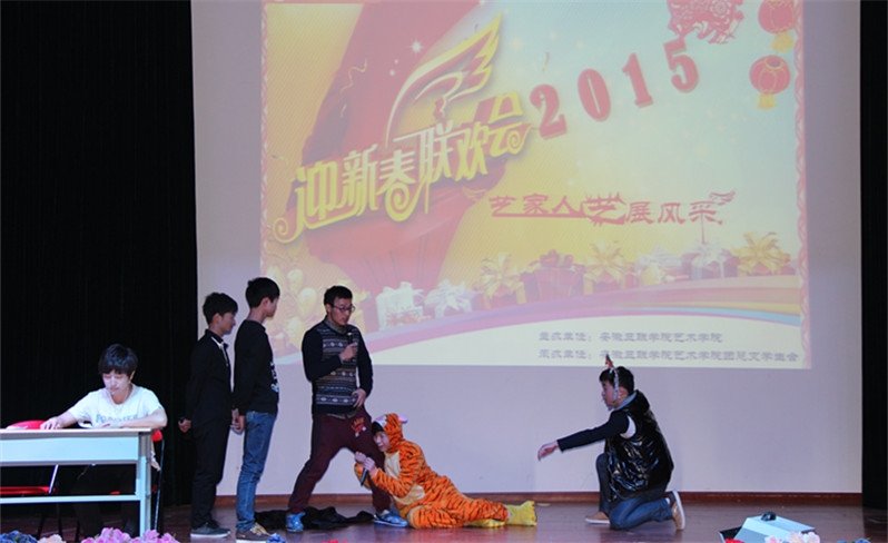 2014年12月29日晚6点,由安徽三联学院艺术学院主办、团总支学生会承办的“迎新春联欢2015”元旦晚会在我校图书馆多功能报告厅激情上演。晚会特邀校党委副书记鲁先长、校院长助理操晓峰、艺术学院院长汪和平、孙义、副院长陶宗华、杨亮、潘玉廉。实创装饰集团有限公司副总经理袁成、品牌推广部主管李文奎、人力资源部主管凌春花、上海联岸科技有限公司肖磊和安徽旅游在线试听中心主管李洋作为嘉宾。
