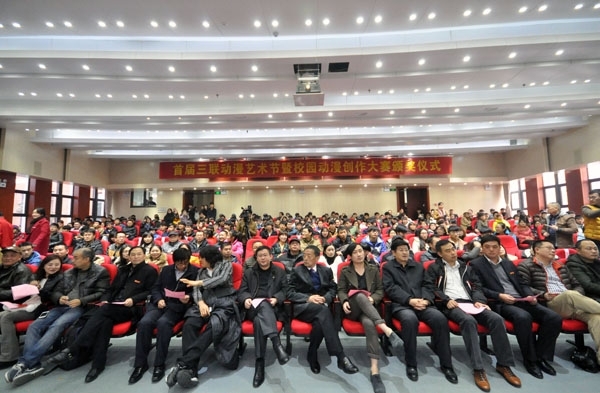 本次动漫艺术节的重头戏之一是校园动漫创作大赛的颁奖仪式,上午10点,颁奖仪式在安徽三联学院图书馆学术报告厅拉开序幕,出席颁奖仪式的嘉宾有上海信息服务业行业协会会长马海湧、日本数字好莱坞大学研究生院副教授、国际动漫研究所所长高桥光辉、安徽三联集团执行总裁、安徽三联学院董事长余皖生和安徽三联学院党委副书记鲁先长、副校长张树林、姜发根等校领导、上海联岸信息科技有限公司董事长金磬和总经理林大卫等公司领导、艺术学院院长汪和平教授、执行院长孙义、副院长周鸣、陶宗华、杨亮、潘玉廉等。此次校园动漫创作大赛是面向全校的大型动漫创作比赛与人才培养活动,旨在发现动漫创意人才,为热爱生活、热爱动漫的漫迷们提供一个展现自我才华的平台,带动动漫在学生群体的快速、健康发展。