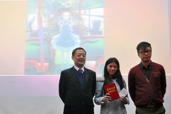 大赛分为“临摹二次元”、“二次元角色再造计划”和“‘我身边的XX君’二次元拟人校园随手拍”三项内容。自比赛征稿以来,收到了来自我校艺术学院、商学院、交通工程学院、计算机工程学院等学生作品400多份,经过校内外5名专家评委的层层筛选共产生特等奖等21名。颁奖仪式特设优秀作品点评环节,评委代表上海一沙数码科技有限公司执行艺术总监王九斤和上海联岸信息科技有限公司艺术总监俞杨先生分别对特等奖、一等奖作品进行点评。来自我校艺术学院的12级影视动画专业的吴杨家安同学表示,通过参加这次比赛,不仅锻炼了自己的创作能力和创新意识,通过比赛还让他有意外收获—认识了更多校外的动漫爱好者。