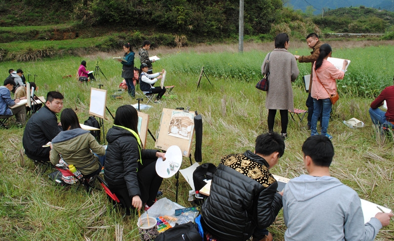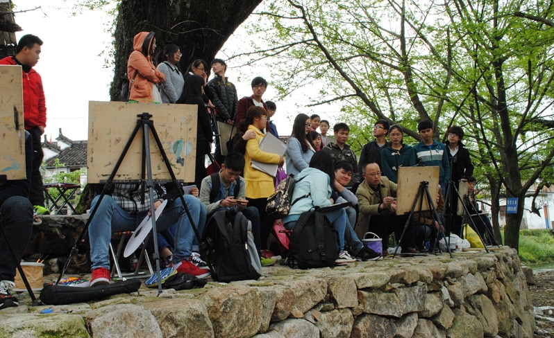 此次写生活动是艺术学院根据教学大纲要求和教学需要,按照学校整体教学计划做出的安排。本次活动历时两周。写生过程中,七位带队老师悉心指导帮助学生及时改进写生技巧和创作思路。学生也非常珍惜这次户外写生的机会。白天行走于一百多年前的古镇小巷,用手中的画笔记录着被博大徽州文化所熏染的恬静心境以及那些石礅桥、马头墙、飞挂的檐角和浓郁的乡风民俗。夜晚在宁静村落中认真地听老师点评习作。