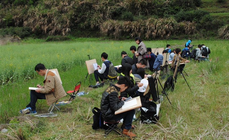 加强学生的动手能力,开拓创作思路始终是艺术学院重视的教学任务。通过外出写生可以提高学生的艺术修养和审美能力,培养他们对自然风景和环境的观察力和感受力,锻炼自己的表现技法,还加强了对素描色彩的掌握能力。