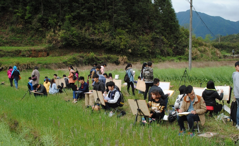 4月20日,艺术学院14级数字媒体,动漫设计,装潢艺术,动画四个专业168多名学生赴安徽屏山,江西婺源写生归来。