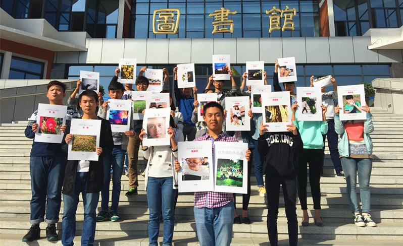 策展人同时也是摄影师的刘兵生老师注重学生实践操作的训练,让学生们明白原理的同时,达到动手能力的提高。图1为2013级摄影专业学生通过《新闻摄影》课程的学习,在展示自己拍摄编排的专题新闻版面。图2为2014级动漫设计与制作2班学生通过《摄影》课程的学习在展示自己的优秀摄影作品。