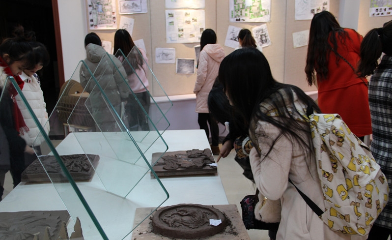 通过前期赴苏州测绘古典园林的抄绘作品向大家展示了13级环境设计班同学的手绘及抄绘能力。同学们的作品在柔和的灯光下营造出一幅幅优美的画面,增添了整个展厅唯美气氛。本次展览集中展示了近150幅优秀作品,它们主题鲜明,图文并茂,构思巧妙。艺术学院领导亲临现场欣赏同学们的作品并交流测绘心得。