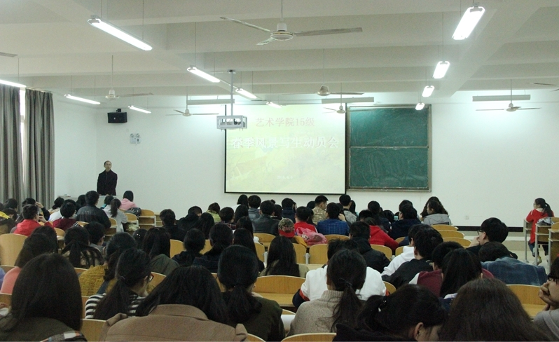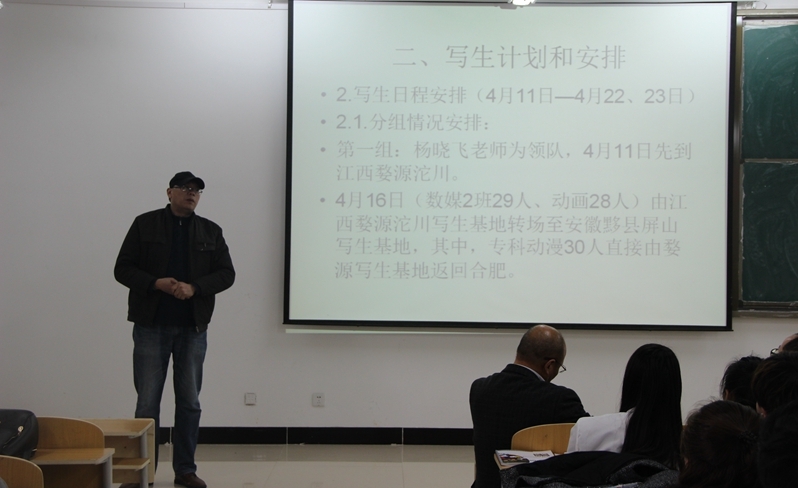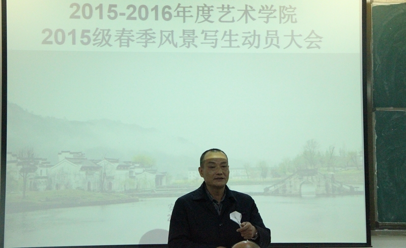 4月6日13:00时,艺术学院春季写生动员大会在K01多媒体召开,会议由杨亮副院长主持,艺术学院院长汪和平、副院长周鸣、陶宗华、杨亮、潘玉廉及部分教师参加本次大会。参加2016年春季风景写生的有15级数媒1班、15级数媒2班、15级动画班、15级专科装潢班、15级专科动漫班,共计158名学生。即将赶赴安徽黟县屏山和江西婺源沱川风景写生,开展实践教学活动。