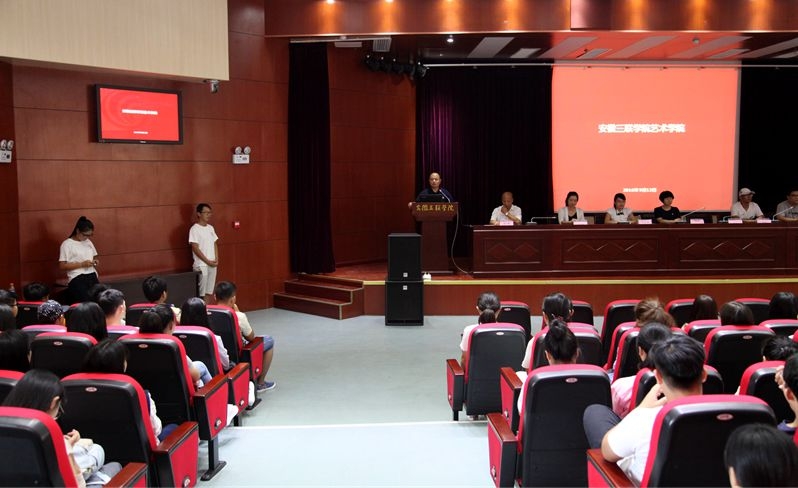 会前艺术学院学生会播放了精心编辑制作的视频,通过视频的方式详细介绍了我院的基本情况,学生活动,所获奖项,学术交流。会上,艺术学院执行院长孙义代表学院全体师生向2016级新生的到来表示热烈欢迎,并简要介绍了学院的基本情况,对2016级同学们寄予了希望、提出了要求,希望同学们要珍惜大学美好时光,尽快适应大学生活,努力学习、勤于实践,全面提高综合素质;要求同学们在校期间要加强自律意识,遵守校规校纪,掌握独立学习、独立生活的本领;同时鼓励同学们要多参加实践活动,锻炼自己各方面能力,孙院长殷切诚挚的话语感染了在场的每一位新生。