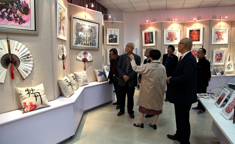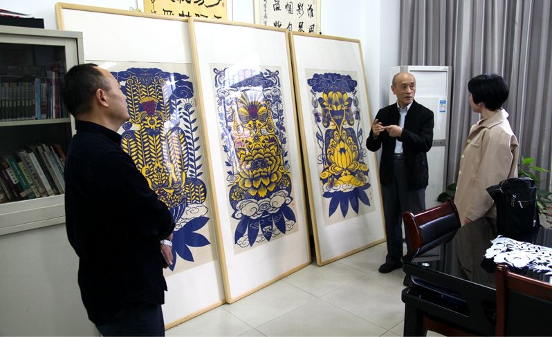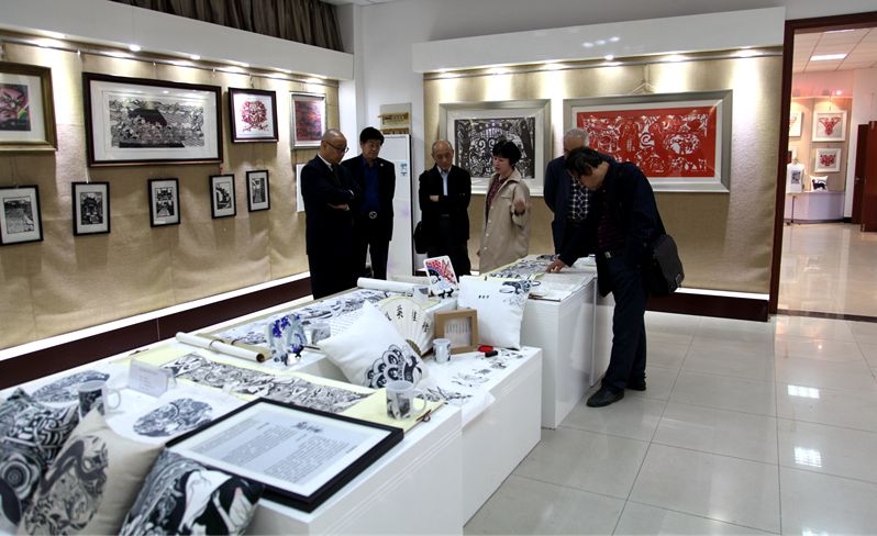 周鸣院长带领客人参观了剪纸艺术展厅,并向客人依次介绍了展厅作品及创作过程,张树贤会长与大家交谈讨论,对我院非遗基地剪纸作品的制作工艺表示赞叹,肯定了我校将传统艺术引入高校课堂的努力,并在留言本上签字赠言,希望剪纸艺术研究中心能进一步开拓思路,将剪纸这一民间艺术发扬光大。
