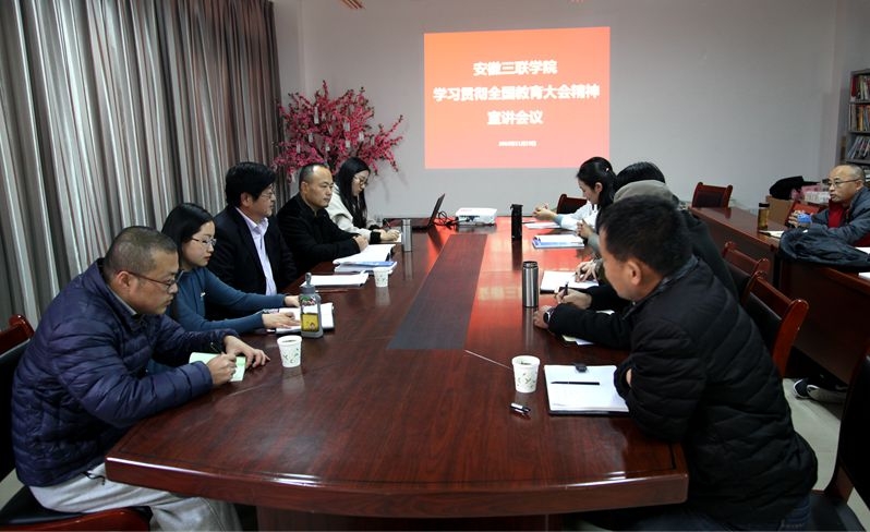 宣讲会上校党委副书记鲁先长带领大家学习全国教育大会精神的相关文件,指出大会提出一系列新理念新思想新观点,深刻阐述了教育工作的根本任务和实施路径,为办好人民满意的教育事业指明了方向,令人振奋,催人奋进。各部门要坚持政治领航,充分认识总书记讲话的重大意义;要坚持学习当先,深入学习教育改革发展的新理念新思想新观点;要坚持落实为要,有效推进立德树人工作。最后孙义要求大家会后认真学习领会,加强对全国教育大会精神的理解和认识。
