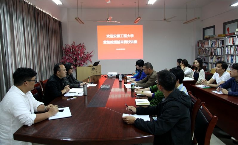 随后,黄凯教授与我院教师分享了安徽工程大学艺术学院学科与科研、师资队伍建设思路及教学与文创产业结合的方法与经验,提出高校科研应结合地方特色,打造科研团队服务地方。