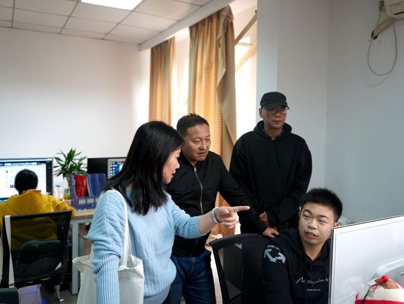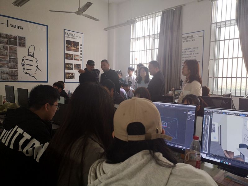 会后学院领导和教研室主任、专业负责人一同前往我院校企产教融合工作室看望了正在新媒体艺术工作室、言色艺术设计工作室实践的学生。