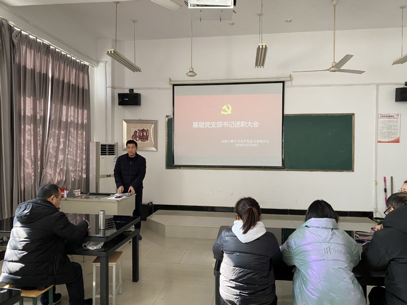 12月30日,动漫与数字艺术学院组织开展基层党支部书记述职评议工作会。总支书记刘德科以及各支部书记,全体教职工党员同志一同听取了4位书记对支部党建工作的述职。