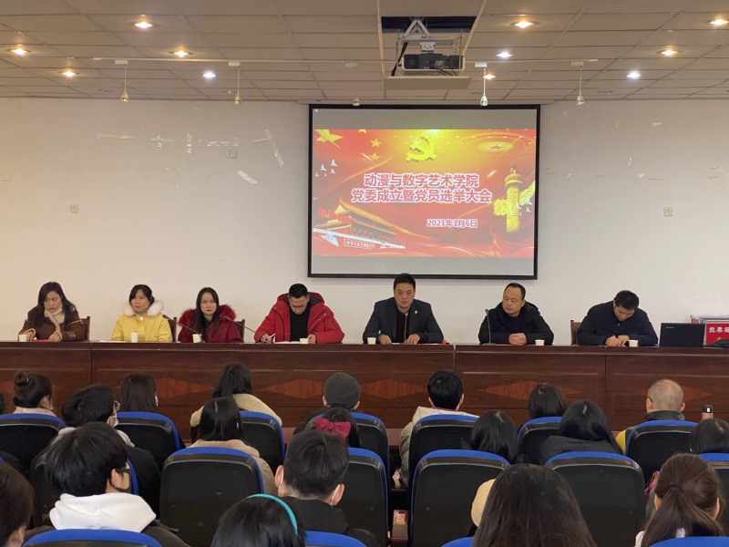 1月6日中午,动漫与数字艺术学院党委成立暨党员选举大会在B01学术报告厅举行。校党委委员、副校长姜发根,党办副主任张启元同志莅临指导工作。会议由党总支书记刘德科同志主持。