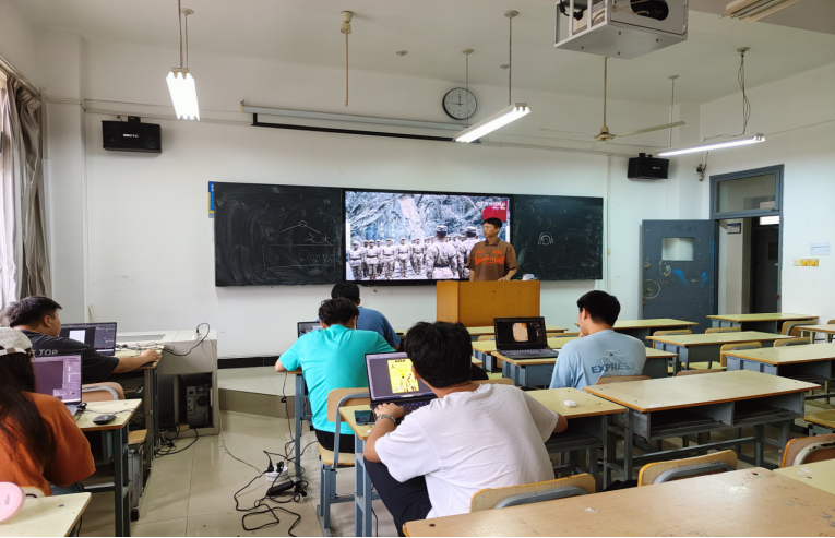 9月27日,学院充分发挥新媒体的传播优势,利用多媒体设备在班级播放“国防公开课专题节目”。